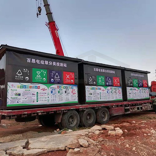 9、标语:正面屋檐下方标语:xxx垃圾分类投放站。